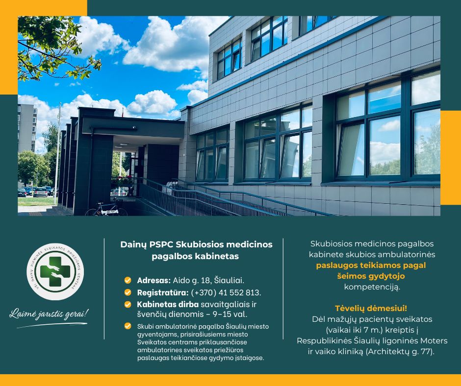 Nuo vasario 22 d. Dainų pirminės sveikatos priežiūros centre savaitgaliais ir švenčių dienomis pradeda veikti Skubiosios medicinos pagalbos kabinetas. Skubi…