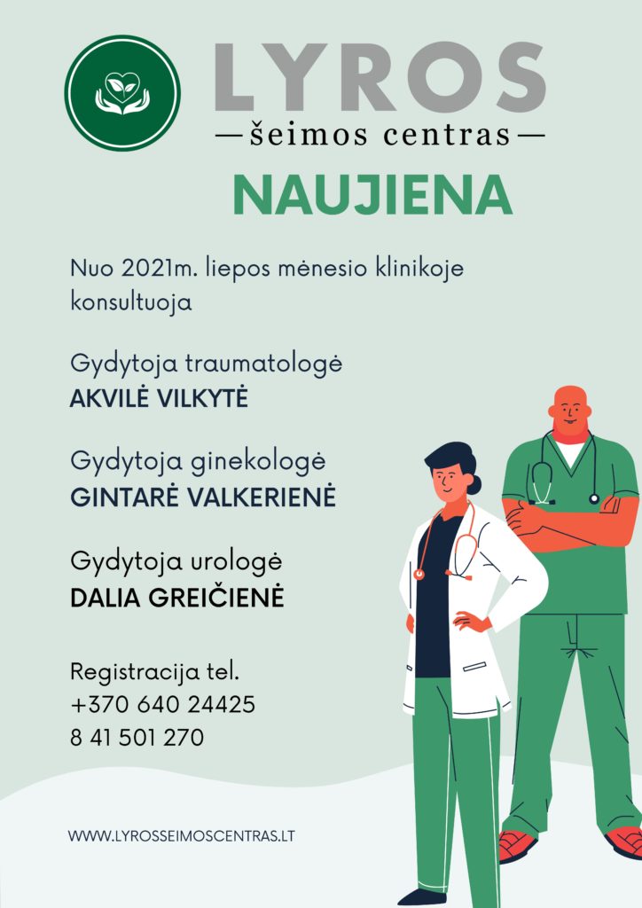Nuo 2021 m. liepos mėnesio UAB Lyros šeimos centre dirba nauji gydytojai
